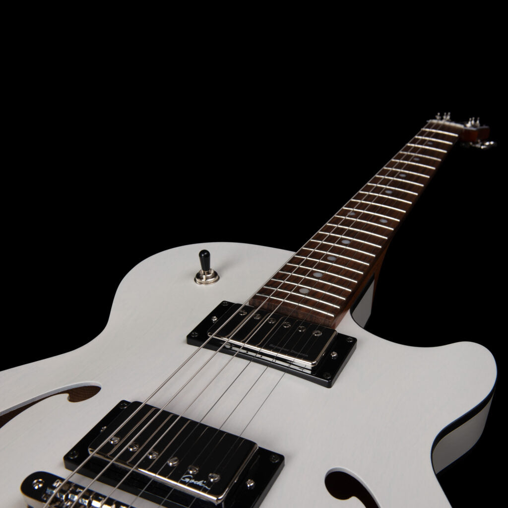 able the body to resonate like no other guitar in its class. But, what makes this model unique is our newly-developed acoustic-inspired finish, which lends itself perfectly to this semi-hollow body design. Because the finish is thinner and more organic in nature—like you would find on a good acoustic guitar—it breathes more freely and offers even more sonic properties to the Montreal Premiere HT. While it is perfectly complemented by a classic Hard-tail bridge, this Montreal Premiere model really stands out.
