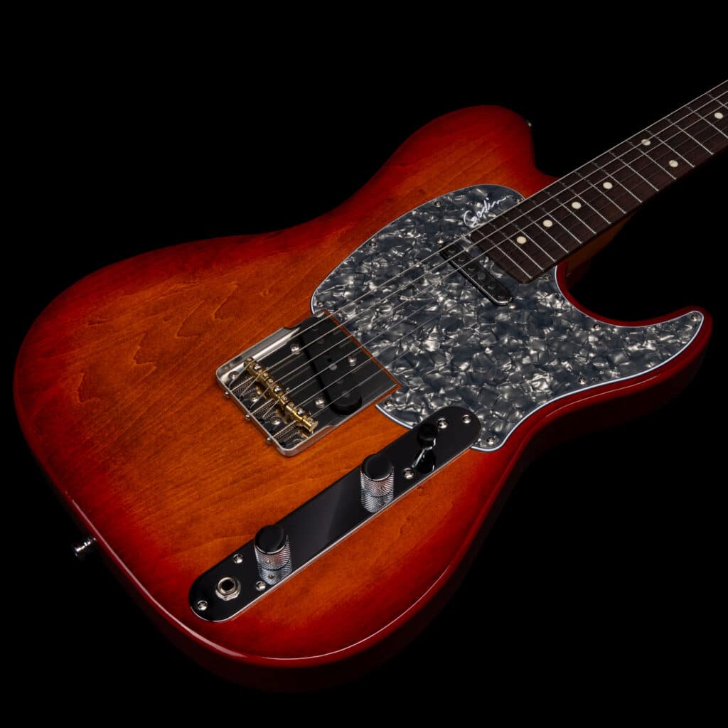 The TV Jones Starwood at the neck produces a fat, warm tone with a dynamic and transparent top end and just the right amount of spank! The Lollar T Special at the bridge is punchy and powerful. These pickups are controlled by a plate-mounted three-way switch and volume and tone controls. Together, this combo serves up a delicious tone and is hum-free in the middle switch position. Rounding out the package is the Godin Custom-T Bridge with brass saddles that are fully adjustable for precise intonation.